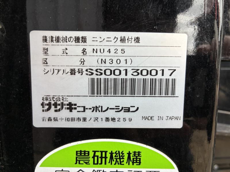| 型式 | ササキ ニンニク移植機(NU425) | ||